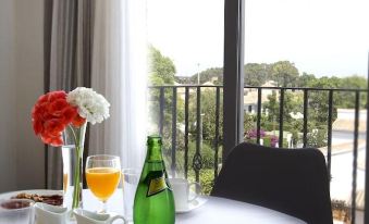 Upon arriving the room was clean, bed was very comfortable, our room had a smart tv, and decent shower. We had travelled from the UK and it was 1am when we arrived and we were desperate for some water and the receptionist wouldn’t give us a bottle of water because the bar was closed. I found it hard to understand refusing a customer some water. Eventually after walking the streets and finding nothing open we returned and begged for some water and were eventually given some! We asked for our room to be cleaned twice during our stay. The first time it had a semi decent clean. Beds and towels were changed (although all towels in hotel seem to be stained which suggests to me they aren’t being washed properly) . The second time we had our room cleaned the bed was made, but sheets were not changed! Dirty towels we had left on the floor were folded and put away as if they were clean! Another thing that shocked us was that one morning we bought some croissants from the bar to eat in our room, however they ended up not being eaten and we returned them to the bar to be binned on a tray with our used cups etc. later that afternoon my husband joked with the bar lady and asked her if the 2 croissants left for sale were ours from the morning, and to our surprise she replied that they were, and asked if we wanted them back. 🥴 those croissants had been sitting in 30 degree heat on our balcony for over an hour, and i don’t know about anyone else, but I certainly wouldn’t want to eat something that another customer had bought taken away, laid outside, then been brought back 🤢 The hotel itself isn’t bad for a budget hotel but the staff are extremely unprofessional, and some of them not very friendly. I can honestly say that service wise it’s the worst hotel I’ve stayed at.