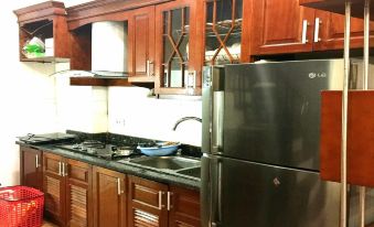 The house composes 4 floors, 3 bedrooms, each bedroom has 1 double bed, 2.5 cleaning toilet. The living room in 1st floor is convenient with a sofa and kitchen. You can cook everything you want cause there is a refridgerator, dishes, pans…etc