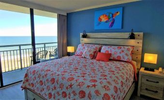 Welcome to OceanAura, a true one bedroom/one bath oceanfront unit with amazing views. Keyless entry with no contact check in or check out. Key code changed after each stay. Luxury vinyl plank flooring, granite counter tops, newer furnishings, 55 inch Samsung QLED SmartTV, bathroom remodeled with new flooring, paint, vanity, light, and gorgeous tiled shower with tub. The bedroom has a king size bed with a very comfy plush mattress to enjoy the views. The nightstands have lamps with USB chargers for your phones and electronics. There is also a tv as well as access to the balcony.