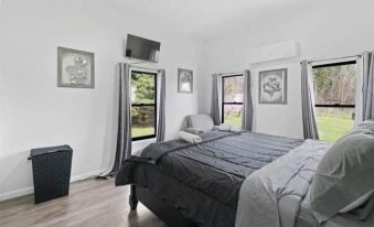 Outdoor dining table. You'll have access to a beautiful area seating and views to nature on the property. Deck directly in front of room has a relaxing seating area for guests to read, dine, converse and just spend a relaxing time together.