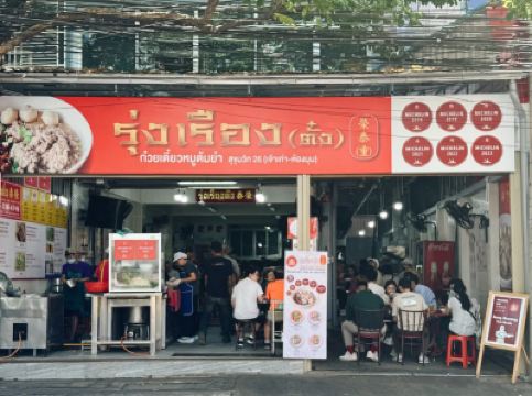 Tucked away in a humble shop along Sukhumvit Soi 26, Rung Rueang Pork Noodle is a true local institution and a must-visit for any food lover in Bangkok. Despite its modest appearance, this place has earned a stellar reputation over the years — and for good reason.Rung Rueang serves a deceptively simple dish: pork noodles. But don’t let the simplicity fool you — each bowl is a masterclass in balance and flavor. You can choose your noodles (thin, thick, or glass noodles) and opt for either the soup or dry version. The dry version, tossed in a spicy-sour seasoning of chili, lime, and fish sauce, packs a punch and brings out the flavor of the tender minced pork and meat slices. The soup option is equally impressive — clear yet incredibly rich and aromatic, infused with pork essence and herbs that make each slurp deeply satisfying.Each bowl also comes with perfectly bouncy pork balls and crispy pork lard that adds texture and depth. The portion sizes are not huge, so you might want to order two bowls if you’re feeling hungry — or if you want to try both versions.Prices are very wallet-friendly, especially considering the quality of the ingredients and preparation. The staff work quickly and efficiently, turning over tables in record time, yet the experience never feels rushed. The crowd here is a mix of loyal locals and savvy tourists, all drawn by the same thing: authentic flavor at unbeatable value.Rung Rueang Pork Noodle isn’t fancy, and it doesn’t try to be. It’s a place where the food does all the talking — and it speaks volumes. If you’re in Bangkok and craving something comforting, honest, and deeply satisfying, this is one spot that truly lives up to the hype.
