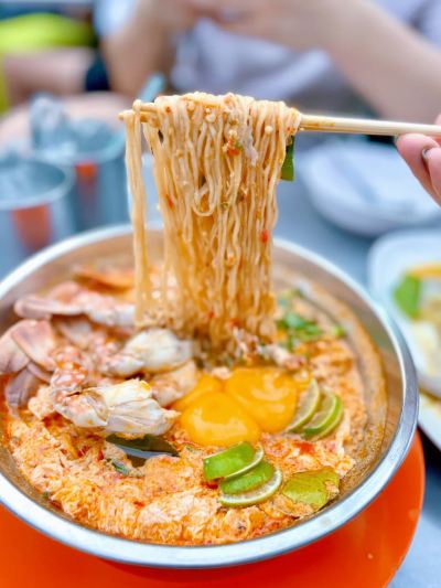 Jeh O Chula is a must-eat late night restaurant in Bangkok. This is a Thai hot stir-fry restaurant. It opens from 5:30 pm to 1 am every day. The signature dish is this basin-sized Thai spicy seafood stir-fried instant noodles. A large bowl costs 250 baht. The highest price is 800 baht. Super seafood dumplings and spicy instant noodles with crabs are basically a tonic.