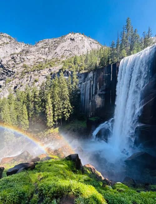 In spring and summer, the waterfalls cascade like the Milky Way descending from the heavens, with Yosemite Falls standing out as a natural wonder of North America with its mighty torrents.