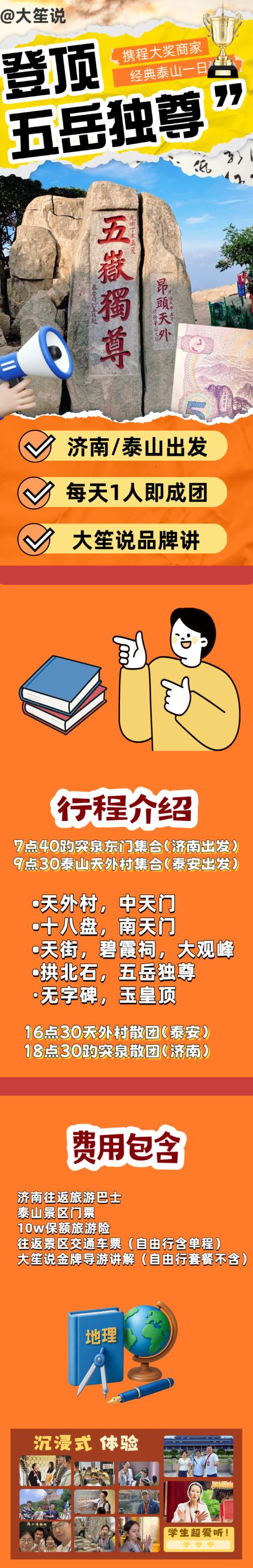Package D features a self-guided tour of Mount Tai, including round-trip transportation from Jinan, attraction admission ticket + uphill ride, and self-guided hiking at a more affordable price.