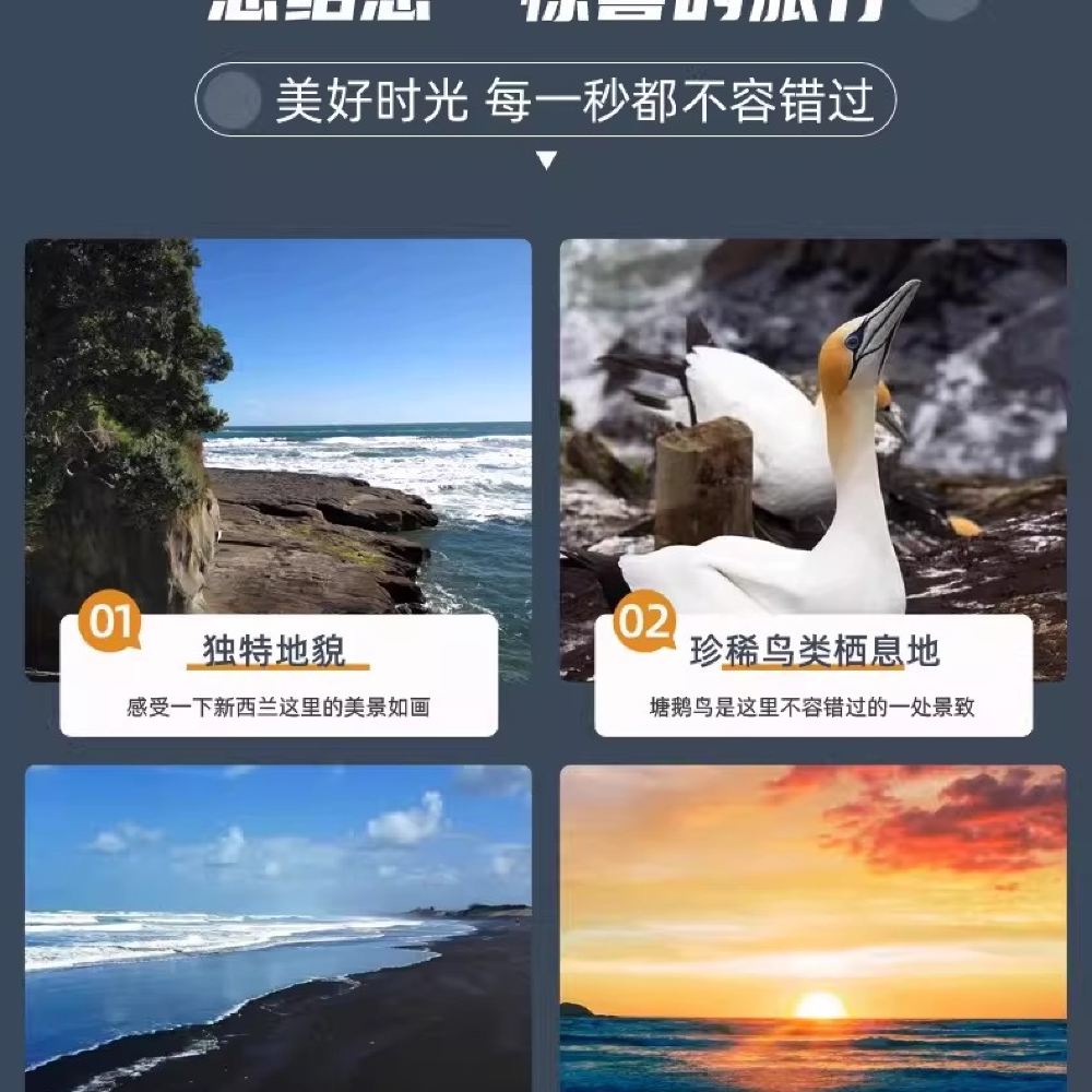 - 3. Half-day fixed itinerary to Muriwai Gannet Colony from 9 AM to 1 PM, priced at 599/person. An additional 100/person surcharge applies for other time slots.