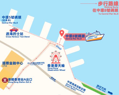 Boarding and disembarkation pier: Central Pier No.8 (as shown below)