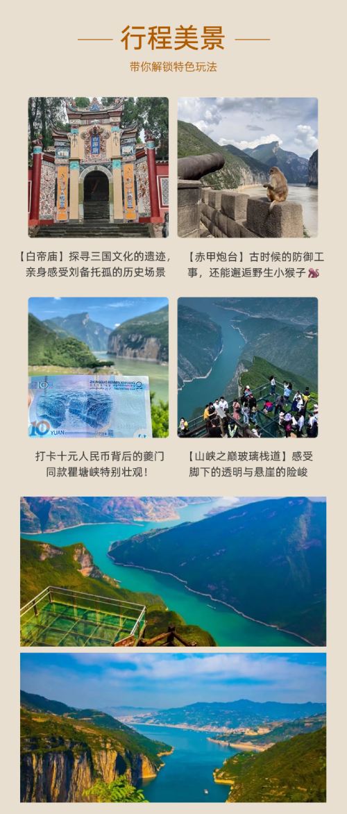 1. This is a private tour and will not be combined with other travelers. Please select the corresponding package and quantity based on the number of travelers (e.g., 2 travelers should book the 2-person private tour with a quantity of 2, 3 travelers should book the 3-person private tour with a quantity of 3). Inclusions: admission ticket to Baidi City, in-depth cruise of Qutang Gorge, and round-trip sightseeing shuttle to the Three Gorges Summit.