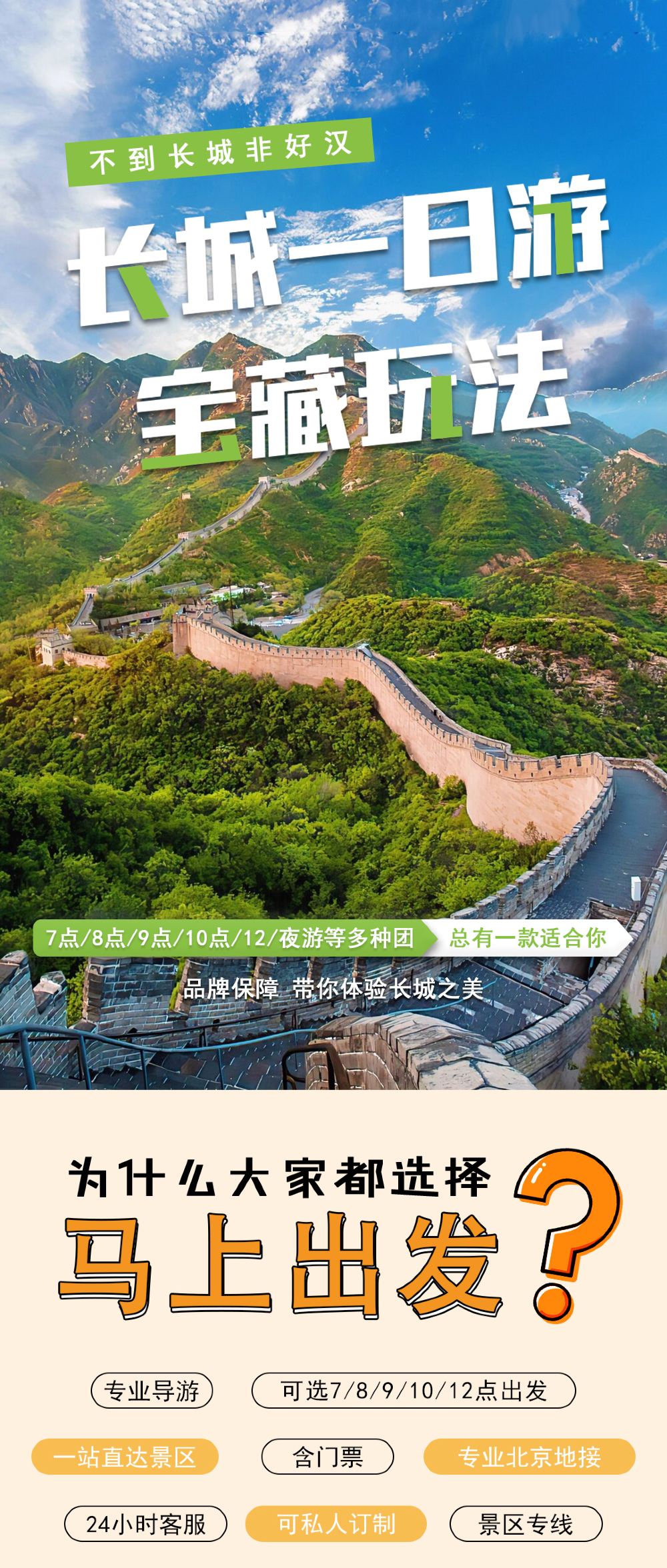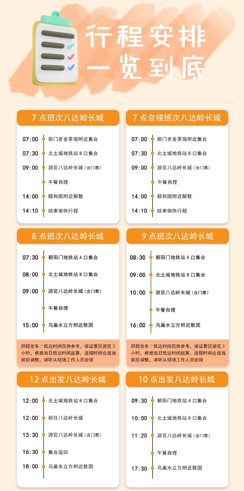Badaling Great Wall 1-day tour with multiple departure time slots, optional small group tour with door-to-door pickup